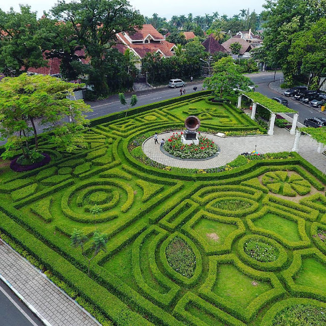 www.PhotoMalang.com Kalau kamu jalan - jalan ke Kota Malang dan bermalan di salah satu Hotel di Jalan Cerme , Hotel Shalimar. Di depat hotel ada taman keren, bernama TAMAN CERME. Taman Cerme ini berbeda dengan taman-taman yang sudah ada di Malang, tanaman hijau di bentuk rapi menyerupai Labirin, tampak keren dilihat dari ketinggian. Di tengah taman terdapat Gramafon raksasa