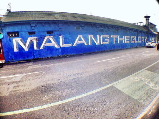 www.PhotoMalang.com - Sebuah tulisan di dinding tembok hotel depan sarinah, bertuliskan " MALANG THE GLORY LAND ". Jalan ini adalah jalan utama untuk menuju pusat kota / Alun-alun kota Malang. dan selalu ramai hilir mudik kendaraan karena merupakan jalan satu arah.
