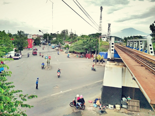 Di bawah jembatan selalu ramai kendaraan dan salah satu kawasan poros karena menghubungkan berbagai tujuan tempat, ke rampal, stasiun, kota lama.