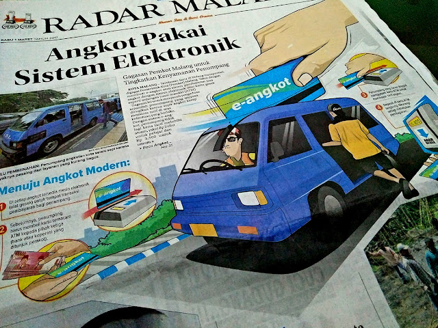 Baru - baru ini ada wacana/gagasan untuk dibuatnya e-angkot. E-angkot ini bertujuan untuk meminimalisir penggunaan tunai/cashless. Menuju angkot modern