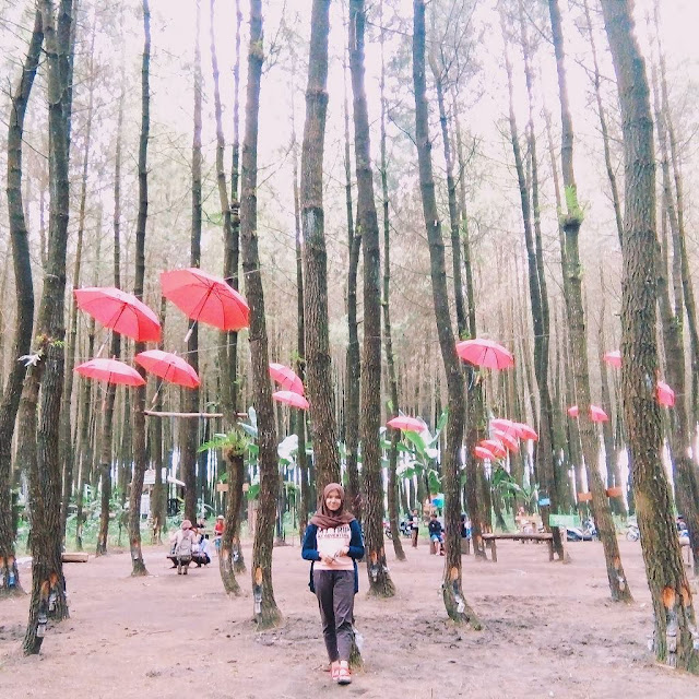 Di Hutan Pinus Semeru ini ada banyak dekorasi lucu seperti payung yang digantung, kita bisa mencoba adrenalin bergelantungan dengan hammock, bertenda/bermalam di area seputar hutan pinus.