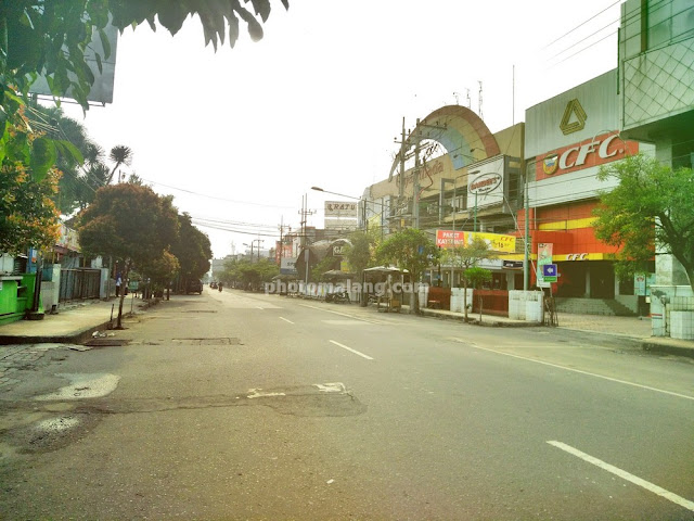 Photo keadaan di seputar depan Gajah Mada Plaza saat sepi dan jarang kendaraan melintas di jalan.