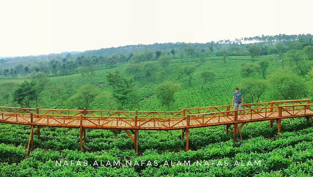 www.PhotoMalang.com - Ada yang baru jika berkunjung ke Kebun Teh Wonosari Malang. Terlihat jembatan kayu melintang sepanjang Kebun Teh ( diatas kebun )terbuat dari kayu.