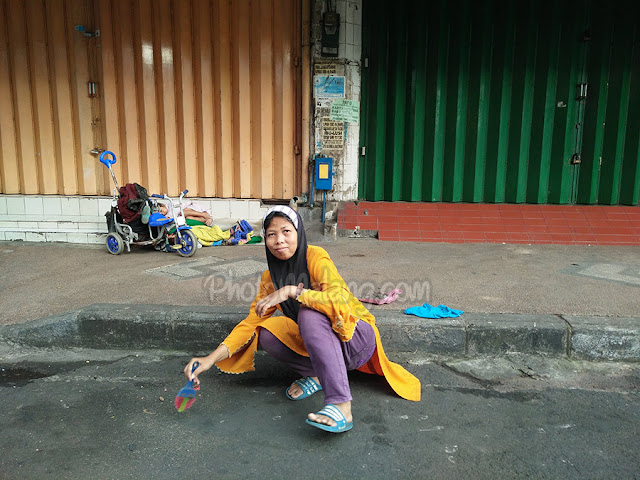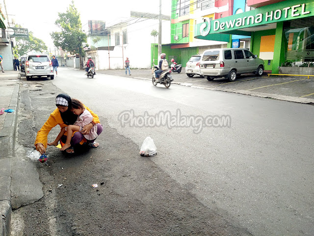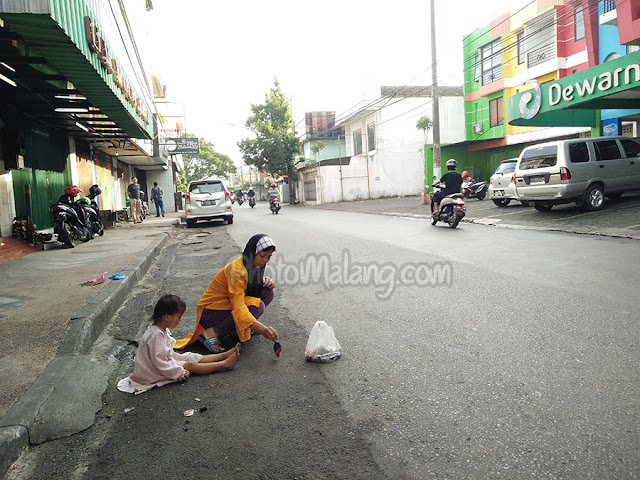 www.PhotoMalang.com Jika melewati Jalan seputar Jl.Zainul Arifin Malang tepatnya di depan Hotel Dewarna, akan selalu meneui seorang Ibu berjilbab sambil membersihkan jalan raya ( aspal ).