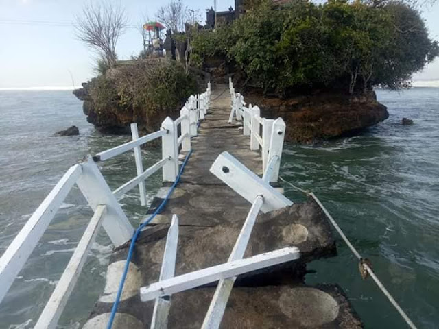 Jembatan Balekambang yang menghubungkan dengan Pulai Ismoyo rusak karena diterjang ombak besar. Beberapa hari ini memang ombak di berbagai pantai, terutama pantai selatan sangatlah besar, bahkan ombak sampai ke pinggir/bibir pantai.