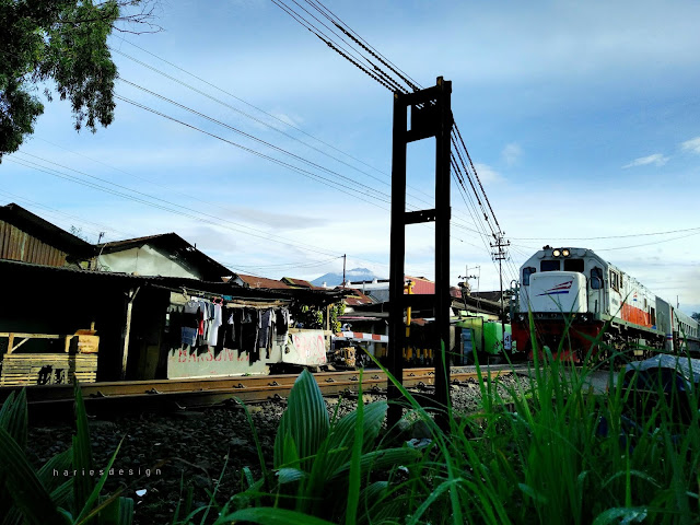 Foto ini diambil saat pagi hari sekitar pukul 07.00 Wib. Sirine perlintasan Kereta api berbunyi yang menandakan kereta api akan melintas. Saat itu juga plang penutup jalan di aktifkan dan menutup perlintasan.