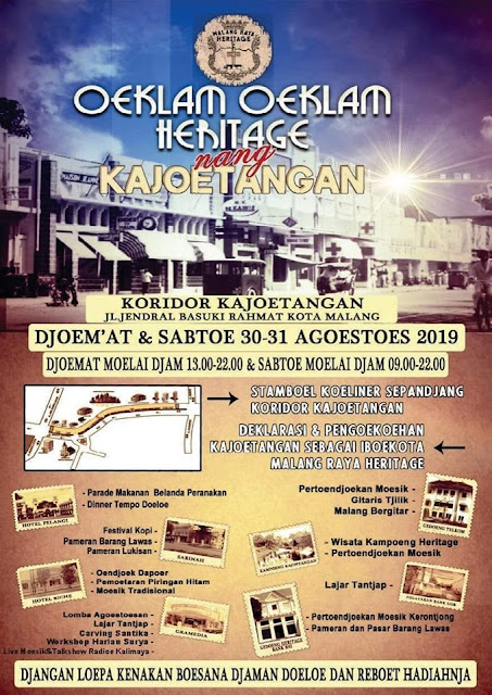 Kota Malang punya gawe bertema tempo dulu, nama eventnya Oeklam Oeklam Heritage nang Kajoetangan. Event Malang ini diadakan di sepanjang Jl. Basuki Rahmat Kota Malang.