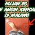 Hari ini di beberapa tempat terjadi hujan disertai angin kencang dan yang membikin heboh adalah adanya hujan es berupa butiran es berakibat seperti dilempar kerikil tampak butiran es kecil berserakan di jalan dan halaman rumah.