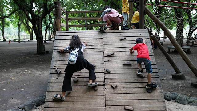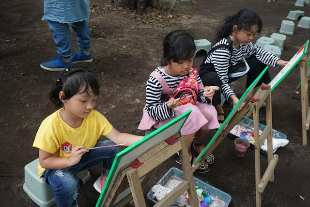 Selain itu ada wahana bermain untuk anak - anak seperti outing bermain tali, naik jembatan kayu, bahkan bisa menggambar.