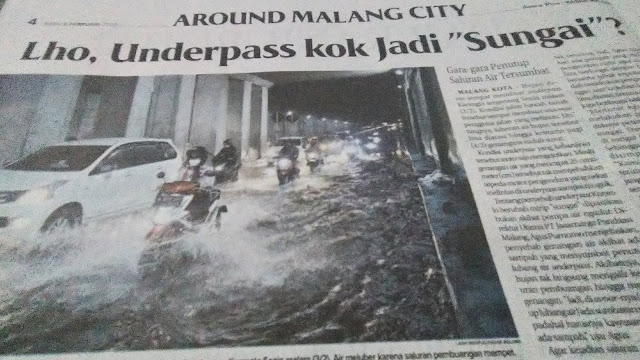 Underpass Karanglo sempat mengalami air menggenang saat hujan di Malang beberapa hari kemarin.