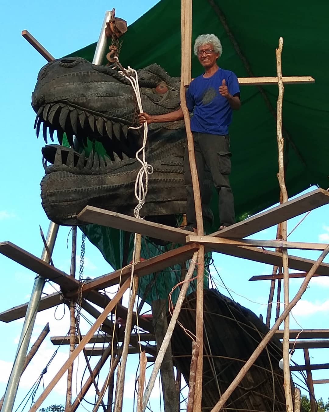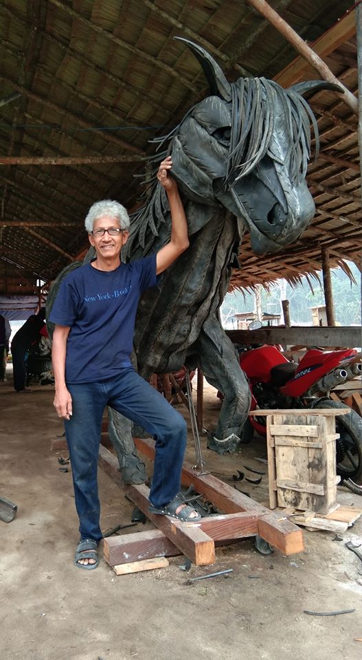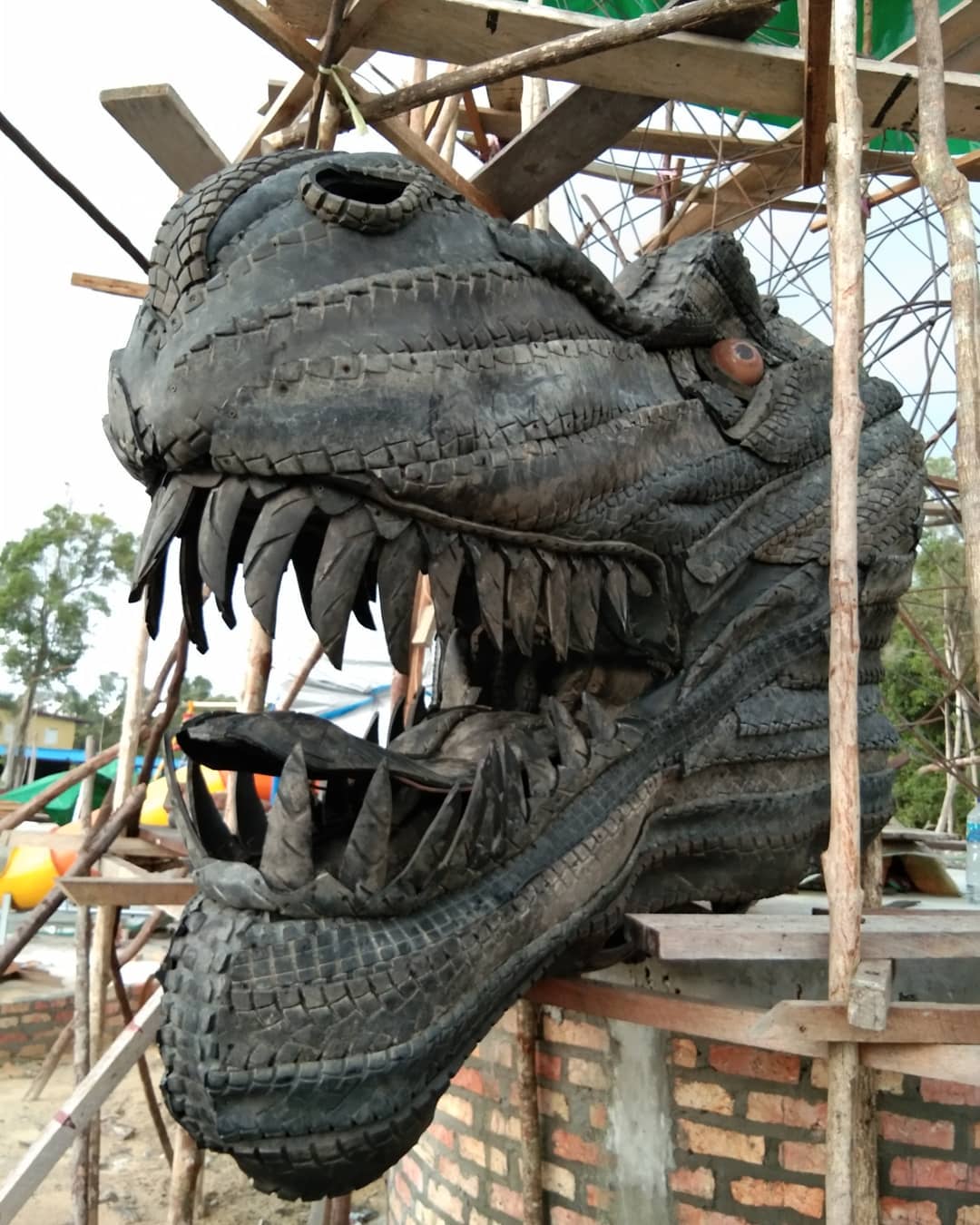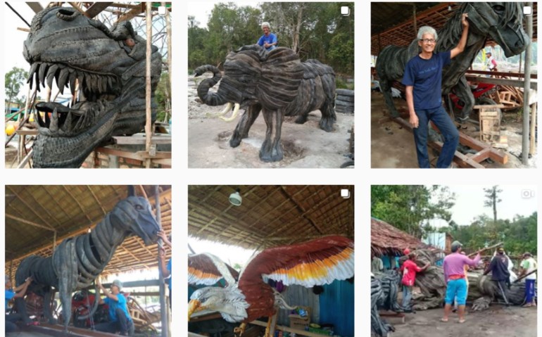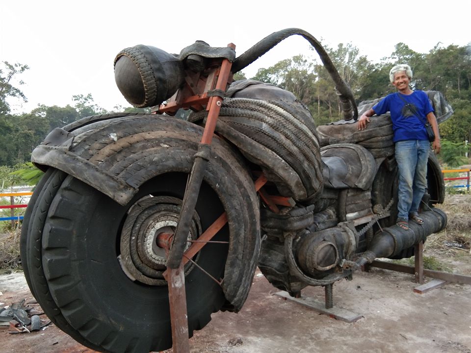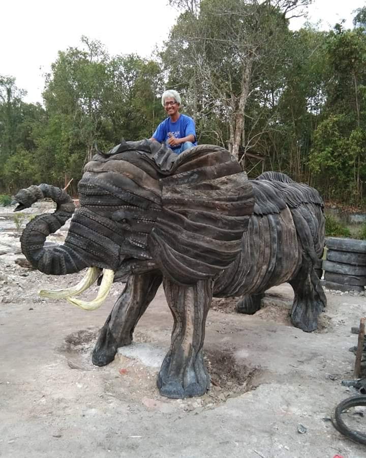 Contoh Yang sudah dibuat patung besar dari ban bekas adalah :