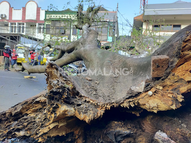Kejadian pohon tumbang ini di Jalan Brigjen Slamet Riyadi ( Oro - oro dowo ) Malang. Lokasi tepatnya di depan travel antar kota dan sebelah warung Sate Ponorogo