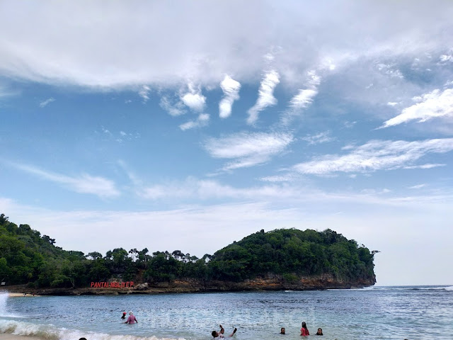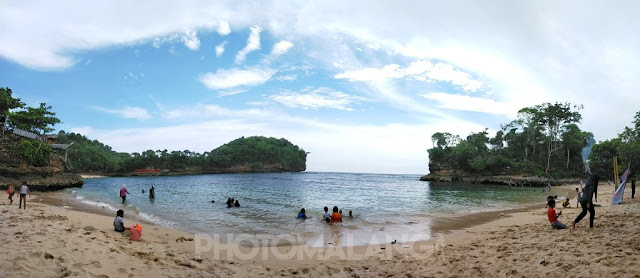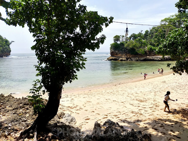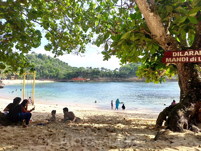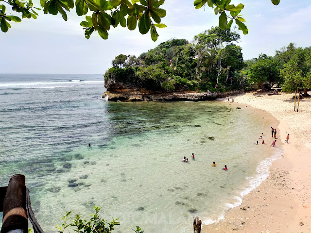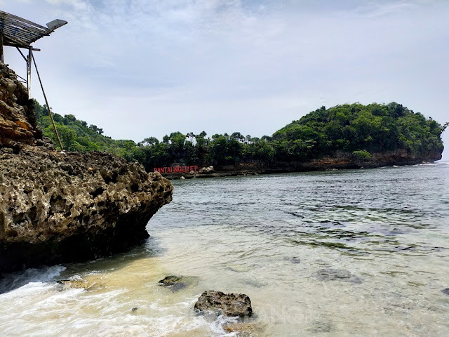 Di Pantai Ngliyep kita bisa menikmati pemandangan yang kece, ada spot foto bisa naik kapal di atas.