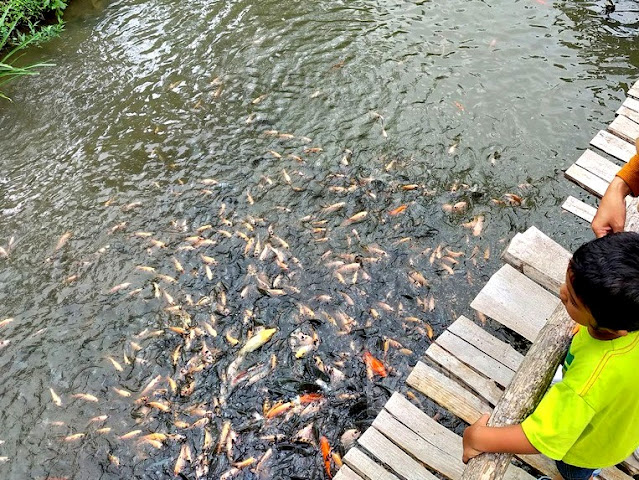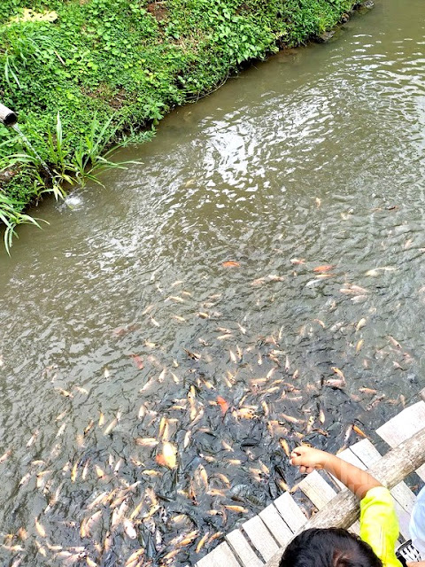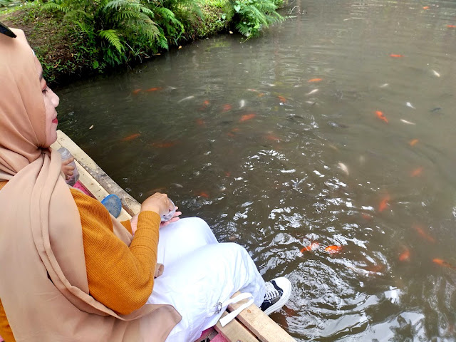 - Memberi makan ikan ( makanan bisa di beli di dekat cafe/warung seharga 5 - 10 K )