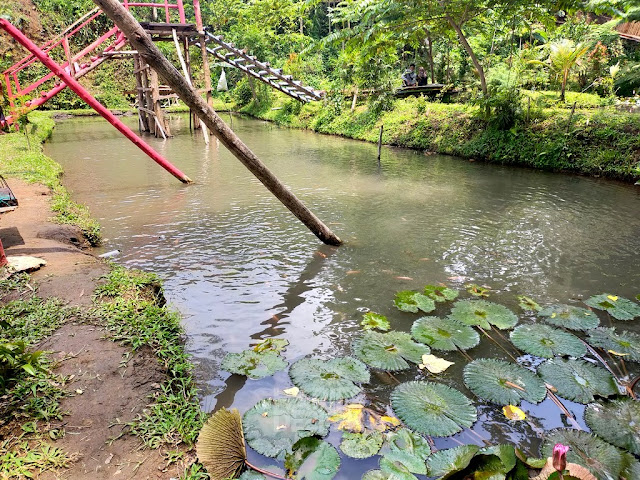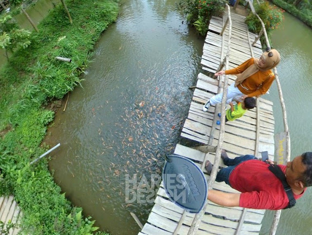 Setelah sampai di lokasi, kita harus berjalan turun ke bawah , karena memang lokasinya di lembah bawah. Banyak spot - spot untuk bisa berfoto dengan latar hijaunya kebun dan kolam ikan koi.