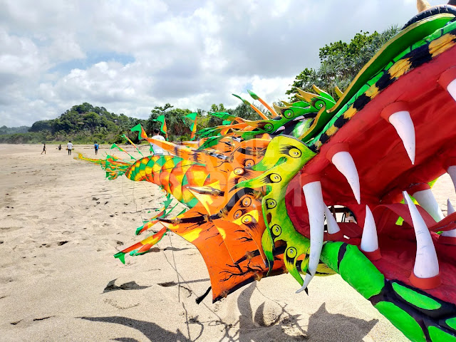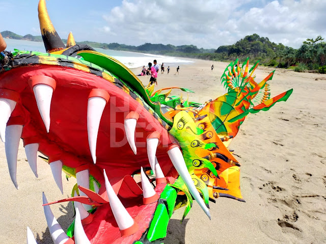 Salah satu Layang-layang kepala Naga ini sepanjang 80 M dan untuk menaikkan membutuhkan beberapa orang untuk menarik dan membentangkan layangan tersebut
