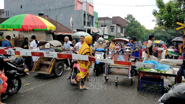 | Saat kereta api belum melintas di Pasar Kebalen Malang |