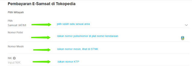 Berikut cara perpanjamgan pajak kendaraan, saya contohkan melalui Tokopedia