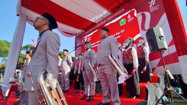 Upacara dalam Rangka HUT Kemerdekaan RI Ke 77 di Kota Malang dan khususnya di Balai Kota Malang. Dihadiri oleh beberapa rombongan dari instansi dan para tamu undangan.